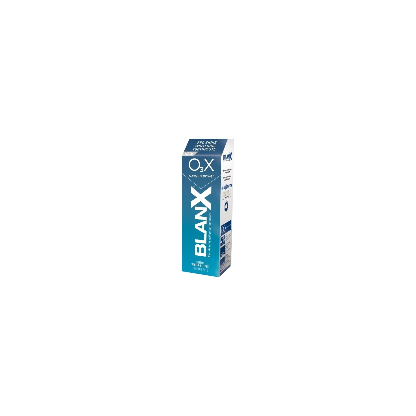- Зубна паста BlanX O3X активно видаляє плями, ніжно надаючи зубам блиск і виняткову яскравість емалі.