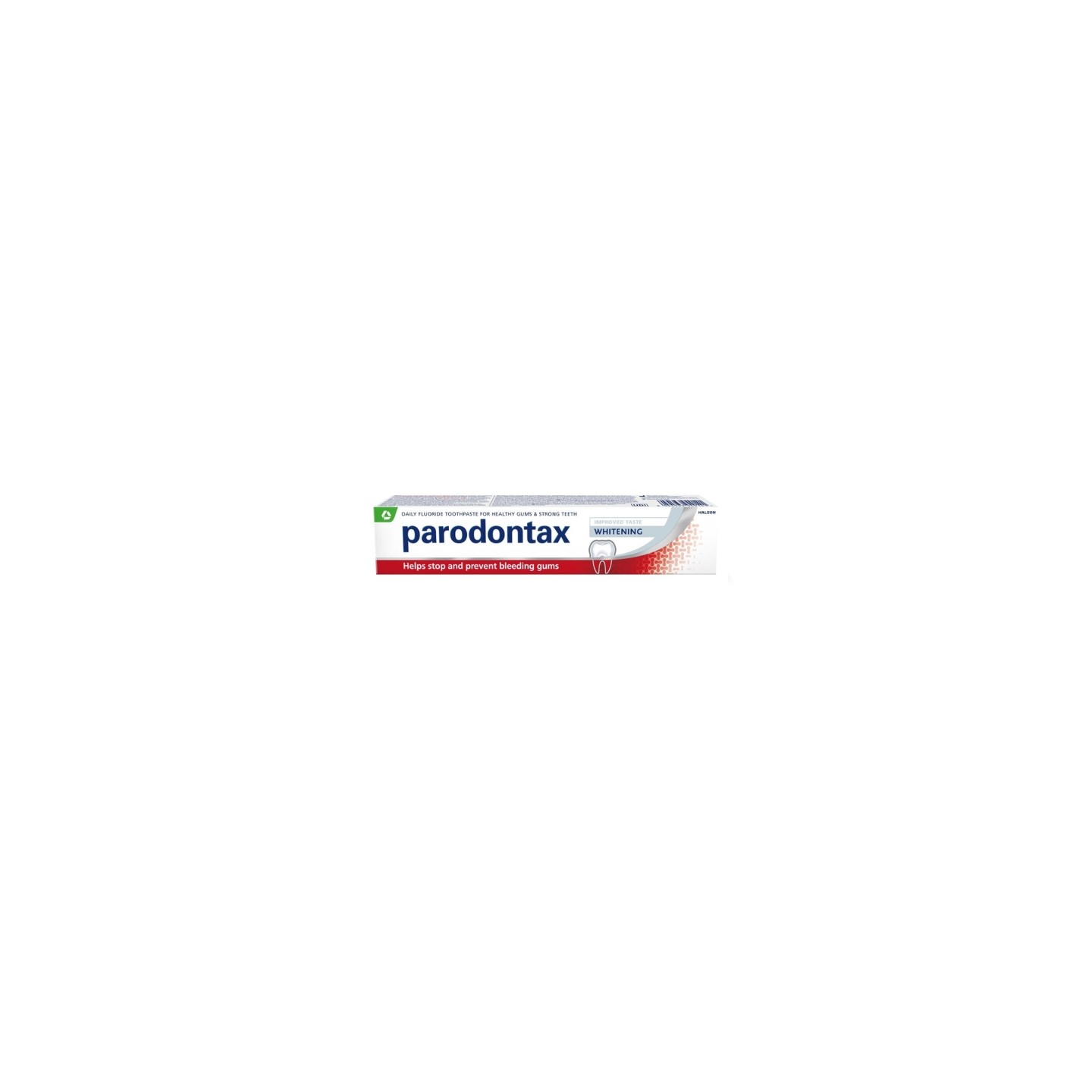 Parodontax Whitening – це спеціалізована зубна паста, розроблена для догляду за яснами та відновлення природної білизни вашої посмішки. Її формула ефективно видаляє зубний наліт, який si вздовж лінії ясен – одну з основних причин кровоточивості ясен – і допомагає зупинити прогресування захворювань пародонту. Регулярне використання зменшує кровоточивість ясен до 58% порівняно зі звичайною зубною пастою. Завдяки високому вмісту бікарбонату натрію та фтору зубна паста відбілює, зміцнює емаль та ефективно видаляє плями, відновлюючи природну білизну зубів. Вона також освіжає подих, залишаючи ваші зуби чистими протягом тривалого часу.