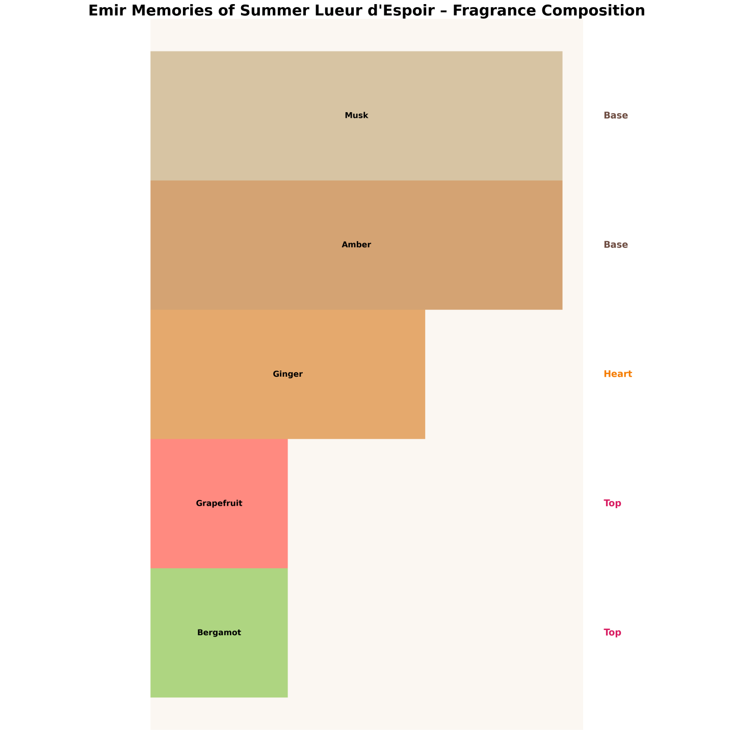 Świeżo, czysto i słonecznie: cytrusowy wybuch grejpfruta i bergamotki, wibrujący imbir w sercu i ciepła baza ambrowo-piżmowa.